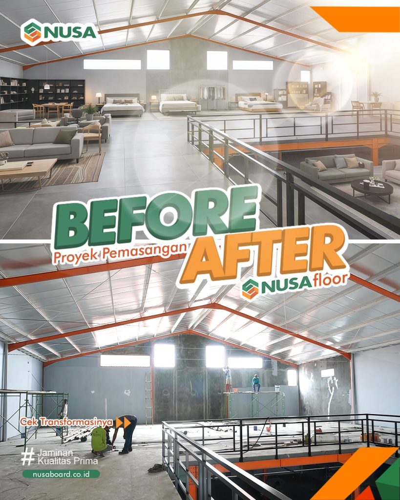 - Rasio Kekuatan terhadap Berat yang Tinggi Meskipun memiliki bobot yang jauh lebih ringan dibandingkan beton konvensional, Nusafloor mampu menahan beban hingga ratusan kilogram per meter persegi. Hal ini mengurangi total beban mati pada struktur utama (balok dan kolom) bangunan.
